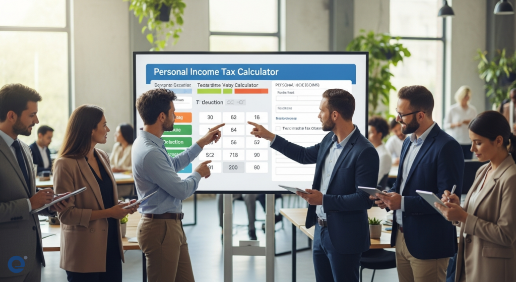 Bảng tính thuế TNCN hiện đại, minh họa các bậc thuế và khoản giảm trừ, giúp người dùng dễ dàng ước tính nghĩa vụ thuế.