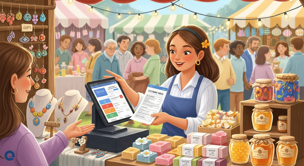 Doanh thu từ việc bán hàng trực tiếp tại hội chợ cần được ghi nhận đầy đủ. Nếu hộ kinh doanh sử dụng hóa đơn điện tử, việc xuất hóa đơn cho mỗi giao dịch là bắt buộc. Trường hợp hộ kinh doanh chưa áp dụng hóa đơn điện tử theo quy định mới, cần có phương án ghi chép doanh thu rõ ràng.