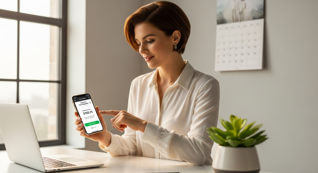 Một người đang dùng điện thoại thông minh để thực hiện thanh toán các khoản thuế một cách nhanh chóng.