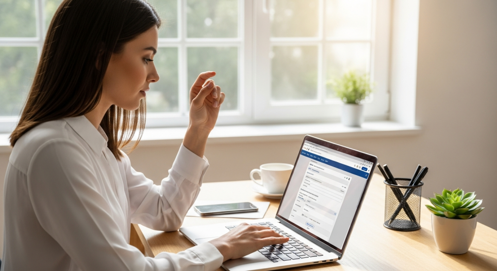 Một người đang sử dụng laptop để kê khai thuế online, giúp tiết kiệm thời gian và công sức.