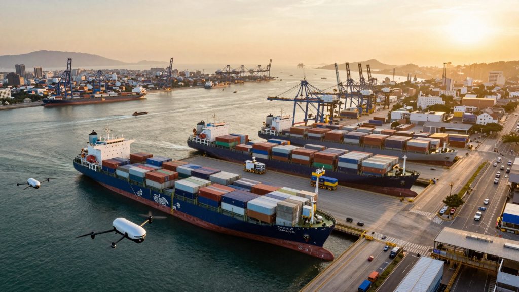 Một cảnh nhộn nhịp tại cảng biển Việt Nam, minh họa cho hoạt động xuất nhập khẩu sôi động.
